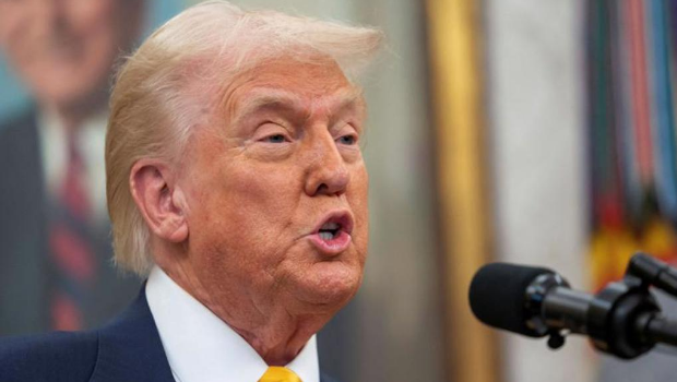 美國總統(tǒng)特朗普2月21日在白宮橢圓形辦公室發(fā)表談話的神情。