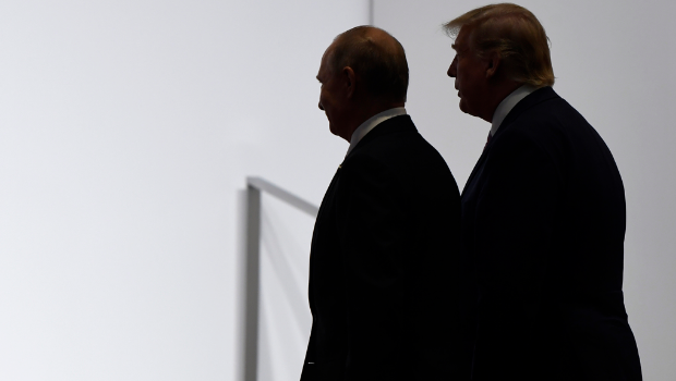 特朗普與普京2019年6月在日本大坂出席G20峰會期間并肩交談。