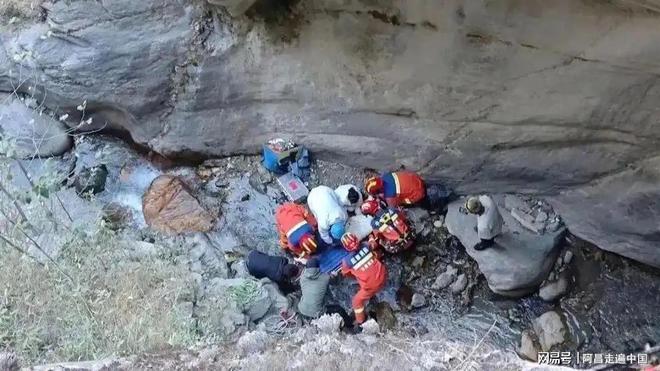 搜救人員在崖底發(fā)現(xiàn)死者。