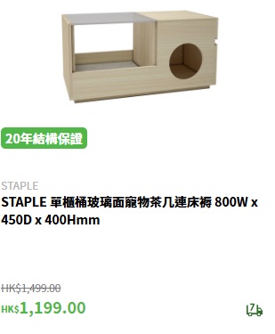 ▲STAPLE單柜桶玻璃面寵物茶幾連床褥減價低至$1,199