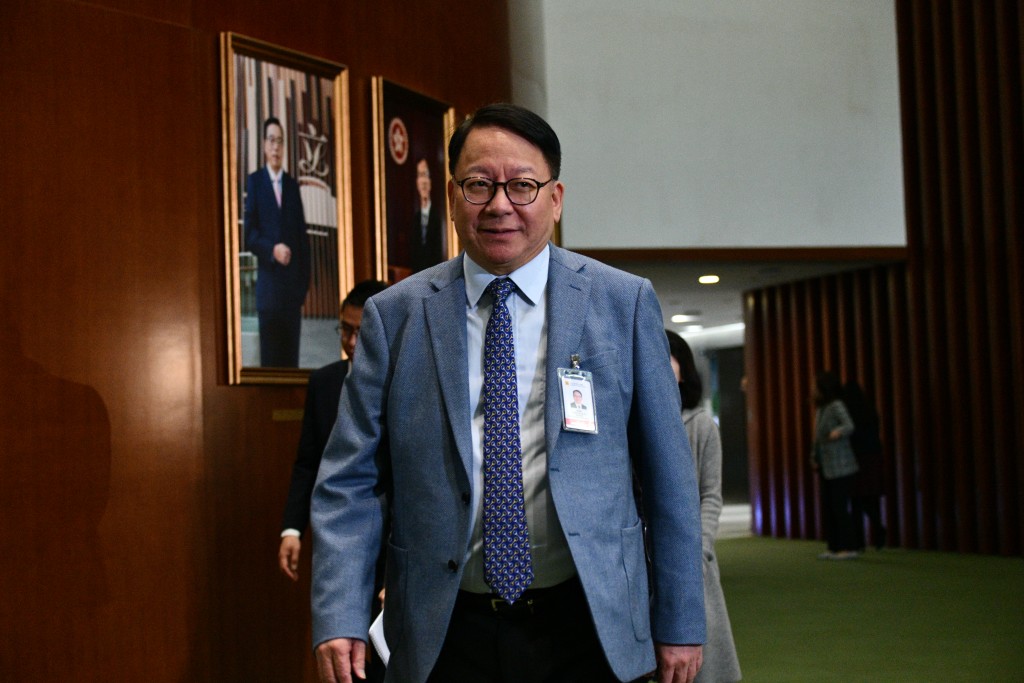 政務(wù)司司長陳國基打上籃色領(lǐng)帶。