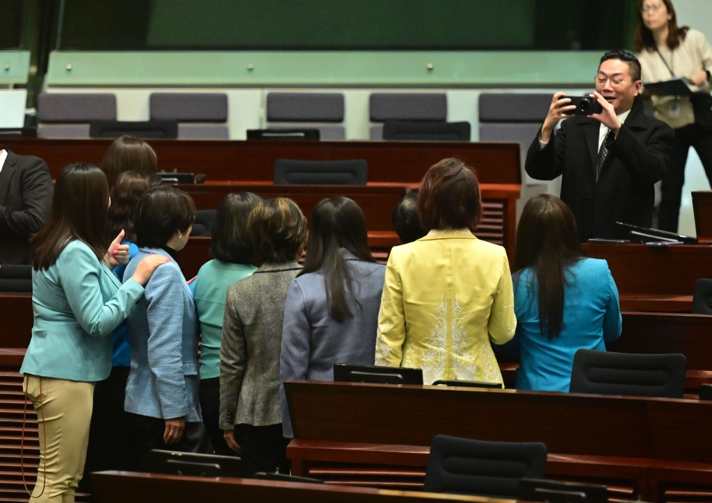 今屆議會女議員佔(zhàn)比增多,人人以不同形式支持,民建聯(lián)葛珮帆、郭玲麗、林琳,經(jīng)民聯(lián)梁美芬,選委界陳曼琪,身穿不同深淺的藍(lán)色外套;新民黨葉劉淑儀身穿的皮褸最貼近湖水藍(lán)色,據(jù)了解她的眼睛發(fā)炎故需戴上墨鏡開會,打扮型格。