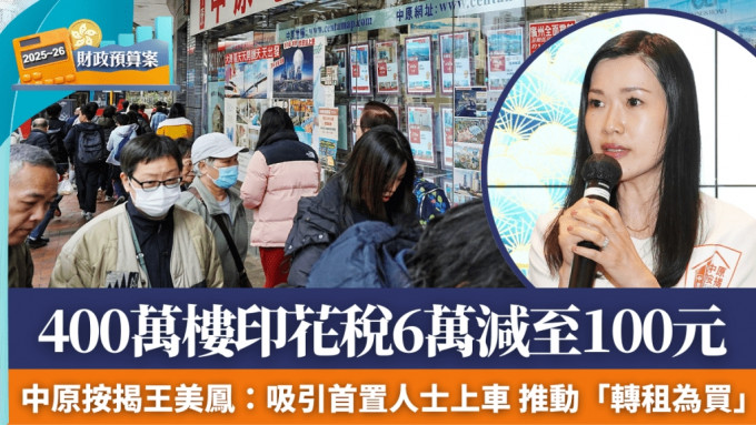 財(cái)政預(yù)算案2025|400萬樓印花稅6萬減至100元,中原按揭王美鳳料吸引首置人士上車