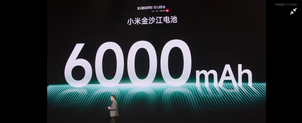 小米15 Ultra電池容量進(jìn)一步增至6,000毫安。