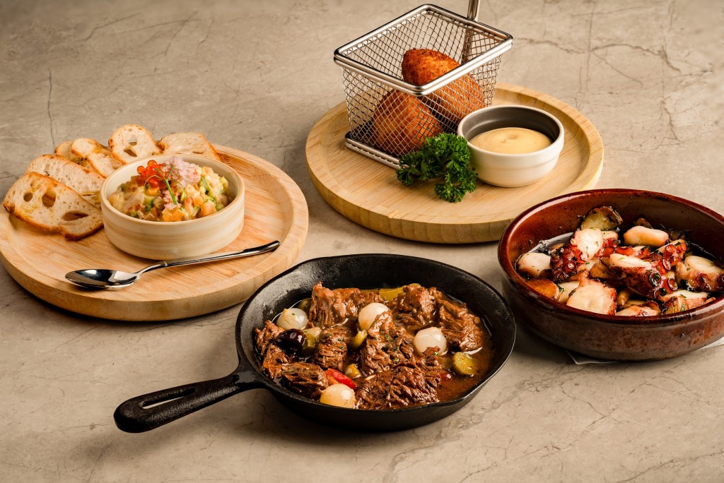 西餐之中,葡萄牙菜特別鮮味,皆因當(dāng)?shù)厥a(chǎn)海鮮。位于中環(huán)的Casa Lisboa Gastronomia Portuguesa,由來(lái)自葡萄牙的主廚Chef Rodolfo Vicente炮制傳統(tǒng)的正宗葡國(guó)菜。Chef Rodolfo設(shè)計(jì)的全新周末早午餐菜譜($468/位),包含招牌葡式焗鴨飯、蒜蓉欖油八爪魚(yú)、炸馬介休球等,例如葡式烤乳豬,是經(jīng)典的葡萄牙名菜,先以古法將乳豬腌制一天至入味,再炭火慢烤至外脆內(nèi)嫩。早午餐菜單由前菜、葡式烤乳豬、葡式飯、主菜及甜品組成,客人可自選1款葡式飯及1款主菜,其中葡式烤乳豬及自選葡式飯均可無(wú)限量任食,滿足一眾大胃王。