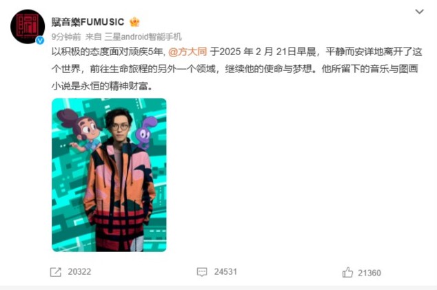 方大同離世|賦音樂(lè)3月1日發(fā)文全文: