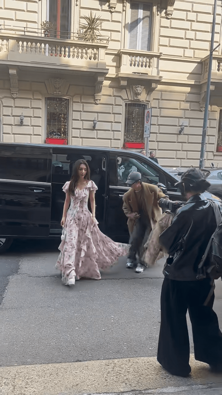 ▲方媛近日現(xiàn)身米蘭時裝周。