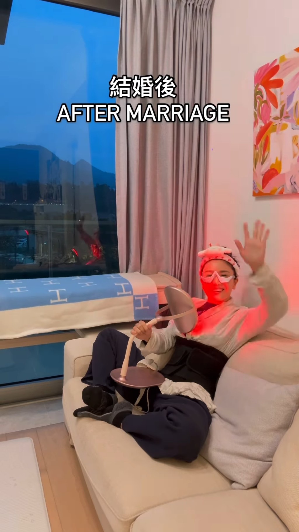 婚后的林芊妤卻是穿上密實居家服,束起頭發(fā),盤膝坐在同一位置照燈護膚,完全有如一個普通師奶。