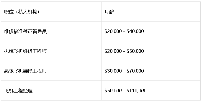 以下是飛機(jī)維修工程師的相關(guān)薪酬: