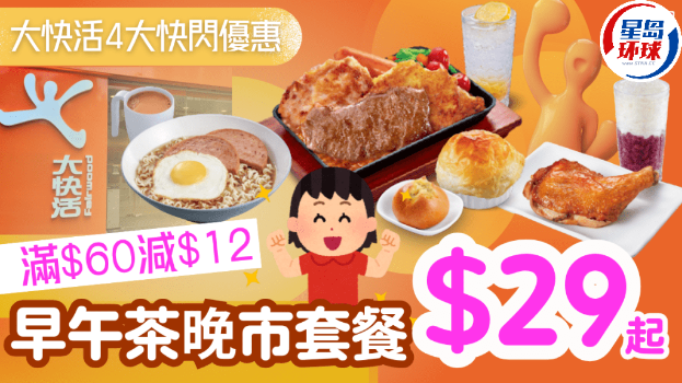 大快活推出4大快閃優(yōu)惠,早午茶晚市指定套餐$29起。