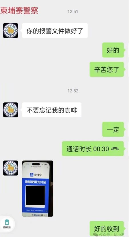 “貼小君”指,最離譜的是,上述收小費(fèi)的警察電話,是家屬通過(guò)大使館取得,而且是柬埔寨官方公示的外國(guó)人求助電話之一。