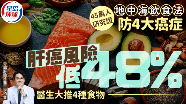 胃腸肝膽科醫(yī)生李柏賢在Facebook專頁(yè)發(fā)文表示,一項(xiàng)最新研究證明,地中海飲食法有助預(yù)防4大常見(jiàn)癌癥,最多可使患肝癌風(fēng)險(xiǎn)大減48%。