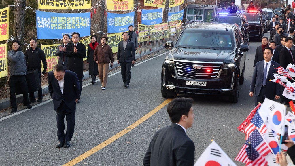 尹錫悅在當(dāng)?shù)叵挛?時(shí)許步出拘留所,大批支持者在門口迎接。尹先握拳高舉,接著2度彎腰鞠躬,并向支持者揮手致意。尹錫悅沒(méi)有直接上車,一路步行揮手,偶爾高舉拳頭,全程面帶微笑,他一度駐足再次向擠在圍籬后方的支持者鞠躬。據(jù)報(bào)他離開(kāi)拘留所后,隨后前往位于首爾漢南洞的總統(tǒng)官邸,下車時(shí)與支持者握手。