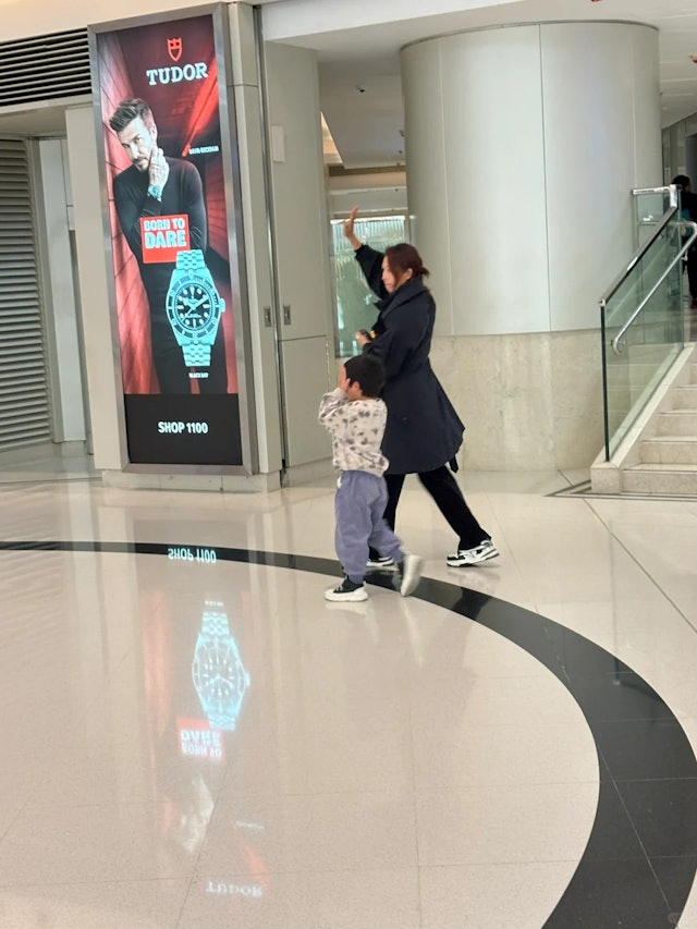 ▲最近,有網(wǎng)民在小紅書上發(fā)布了一段巧遇蔡少芬與子女逛商場的影片。