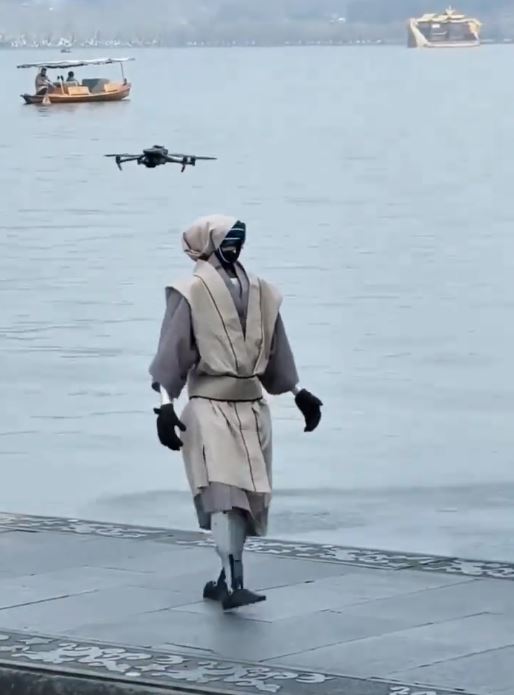 ▲古裝人形機械人現(xiàn)身西湖邊。抖音