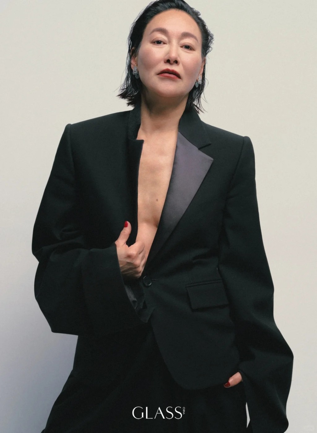 這個國際知名奢侈品牌,剛釋出惠英紅的時尚美照,其中幾張惠英紅真空上陣,外面僅穿一件黑色西裝襤,內(nèi)里空空如也極盡性感,展現(xiàn)出惠英紅依然保持得極佳的線條與身材。 今輯照片惠英紅行型格路線,故此笑容欠奉,稍濃的妝容配上All Back發(fā)型,帶點(diǎn)中性的知性味道。
