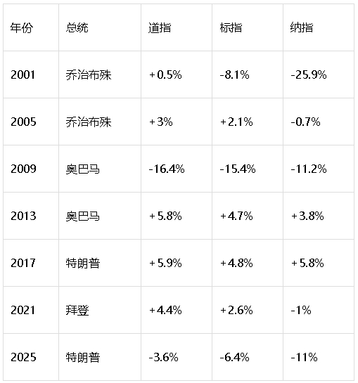 千禧年后美國總統(tǒng)首50日市場表現(xiàn):