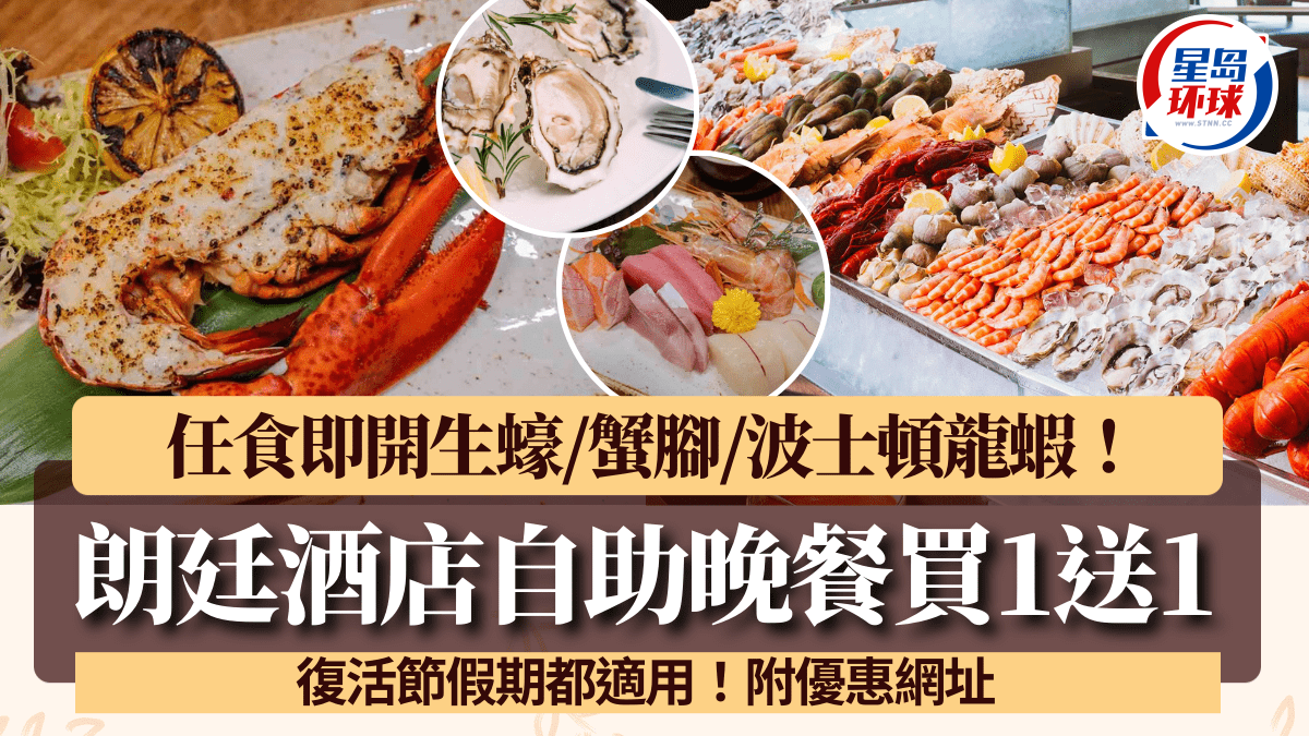 朗廷酒店自助餐買1送1!任食即開生蠔/蟹腳/龍蝦