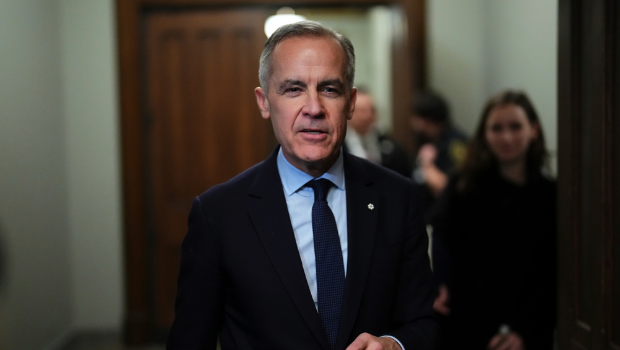 加拿大執(zhí)政的自由黨新任黨魁卡尼,即將于14日就任總理。圖為卡尼10日在渥太華出席自由黨決策會議后露面。(美聯(lián)社)
