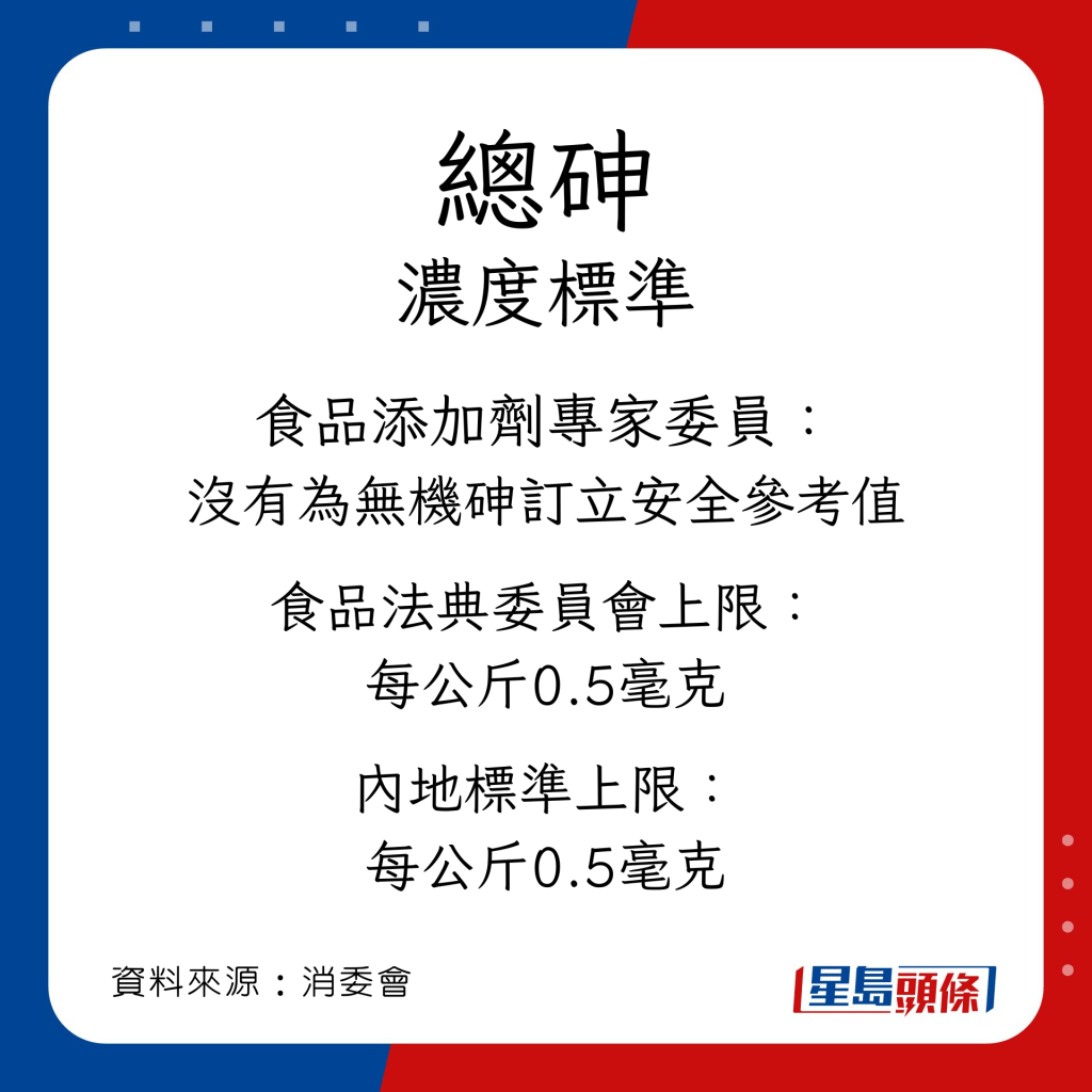 消委會測試39款食鹽,有25款(六成)含金屬污染物,包括砒霜。