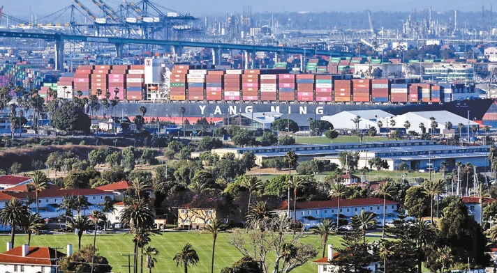 ▲特朗普政府關(guān)稅政策反復(fù)無(wú)常,對(duì)各行各業(yè)造成影響。圖為洛杉磯港貨船。洛杉磯時(shí)報(bào)