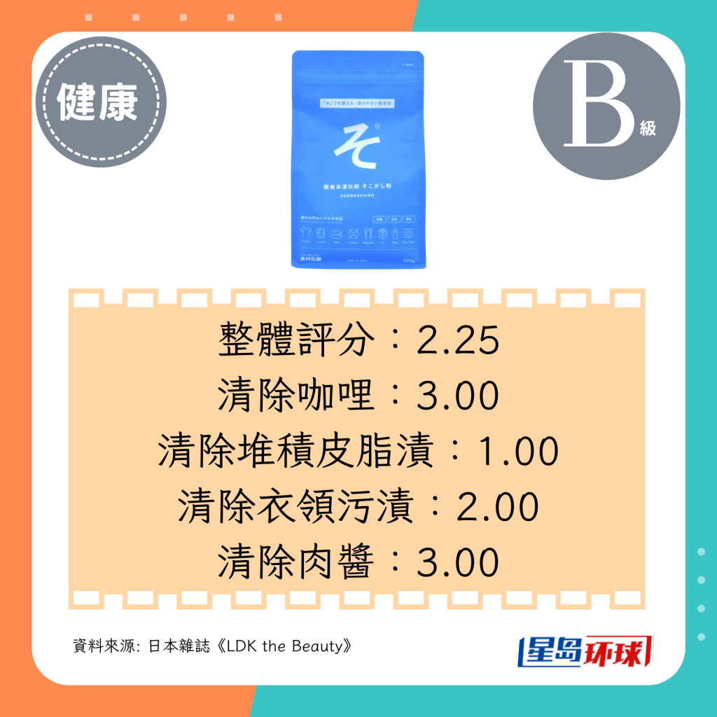 ▲第7位(2.25分):木村石堿 家庭萬用去漬洗衣清潔粉(日圓¥730,約HK$38)