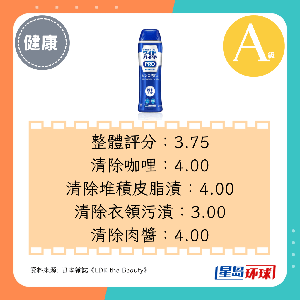 ▲第5位(3.75分):花王Ka0 PRO強力分解衣物漂白粉(日圓¥497,約HK$26)