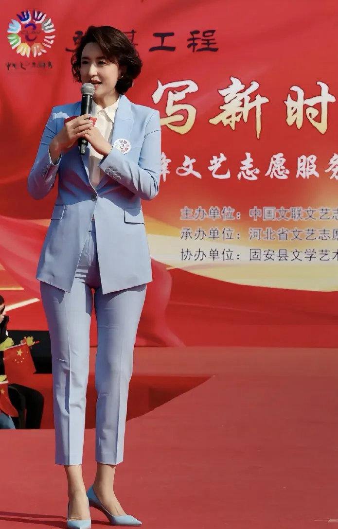 ▲前央視主播張蕾日前出席公開活動時,因穿上緊身西裝褲而被批不雅。