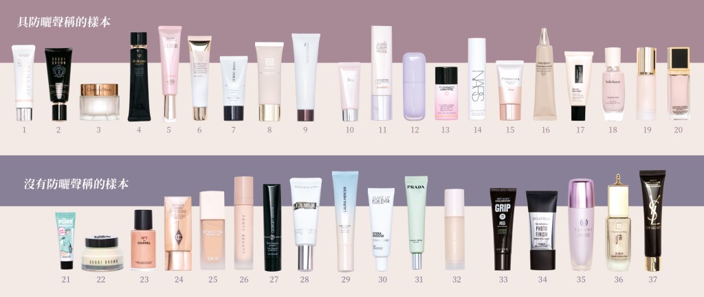 37款測(cè)試樣本中,只有“Hourglass礦物質(zhì)妝前乳 SPF15”及“Giorgio Armani 隱逸美肌妝前底霜”不含可能干擾內(nèi)分泌的防曬成分,以及可能刺激皮膚或?qū)е逻^敏的反應(yīng)成分和物質(zhì)。