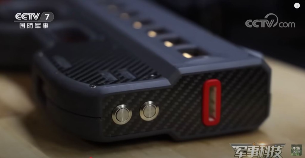 央視軍事日前發(fā)放影片,曝光一款電磁槍(“威力可控電磁發(fā)射器”),外形方正、握把中置、彈匣在后的電磁槍,採(cǎi)模塊化設(shè)計(jì),槍管長(zhǎng)約30厘米,重量較輕,可單手持槍。