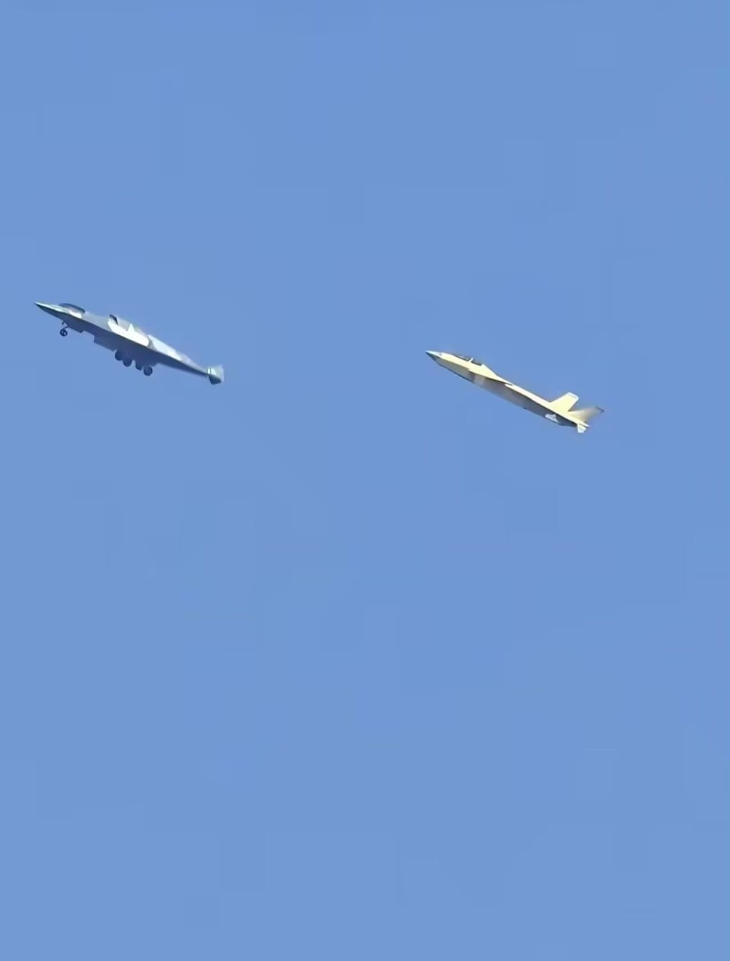 ▲試飛的“六代機(jī)”機(jī)服有兩個(gè)進(jìn)氣口。