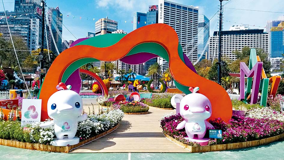 為迎接即將舉行的第十五屆全國運(yùn)動會和全國第十二屆殘疾人運(yùn)動會暨第九屆特殊奧林匹克運(yùn)動會,花展特別以“悅”與“動”為主題,結(jié)合秋英與各色花葉植物,并設(shè)置五個與運(yùn)動相關(guān)的新月形藝術(shù)裝置,賞心悅目。另外更有全運(yùn)會吉祥物“喜洋洋”和“樂融融”的巨型掛幕讓市民打卡,進(jìn)一步提升全城的運(yùn)動熱情。