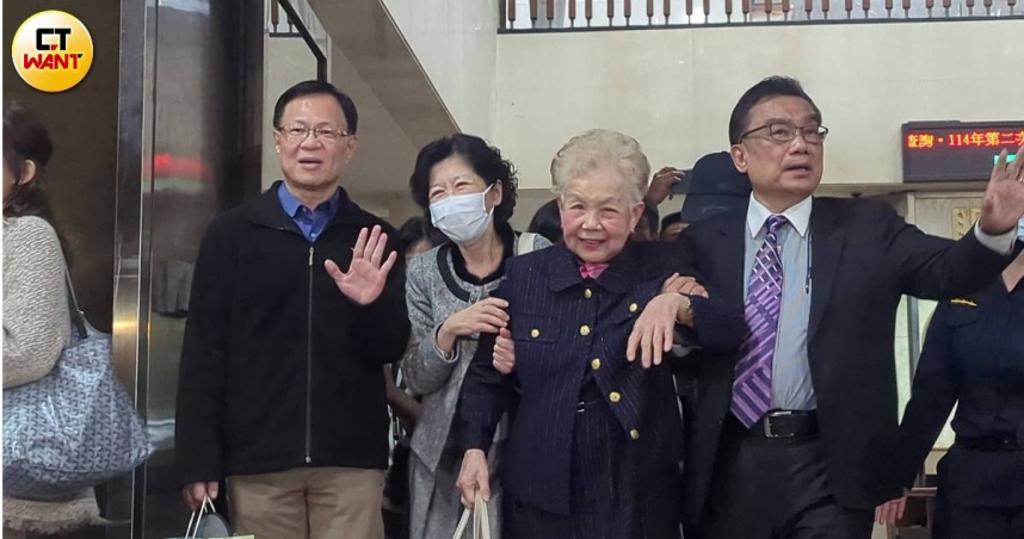 隨后,柯文哲的妻子陳佩琪與柯媽也在延押庭結(jié)束后緩步現(xiàn)身,身旁還有“立委”張啓楷與“立委”林國(guó)成在旁陪伴,陳佩琪一路攙扶柯媽上車(chē),柯媽則微笑對(duì)著支持者揮手表示,“謝謝大家”,并搭車(chē)離開(kāi),一旁則有支持者不斷在旁大喊,“柯媽加油”、“佩琪加油”。