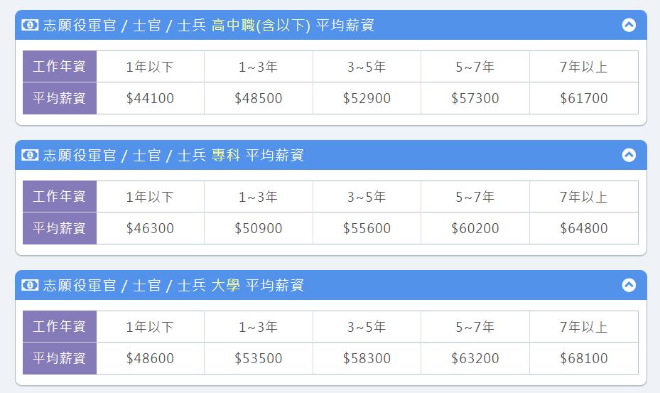 臺(tái)灣自愿役軍人薪酬。