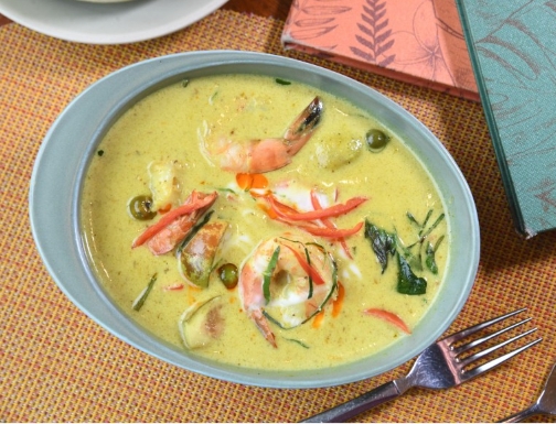 著重香料配搭 椰汁青咖喱大蝦食譜
