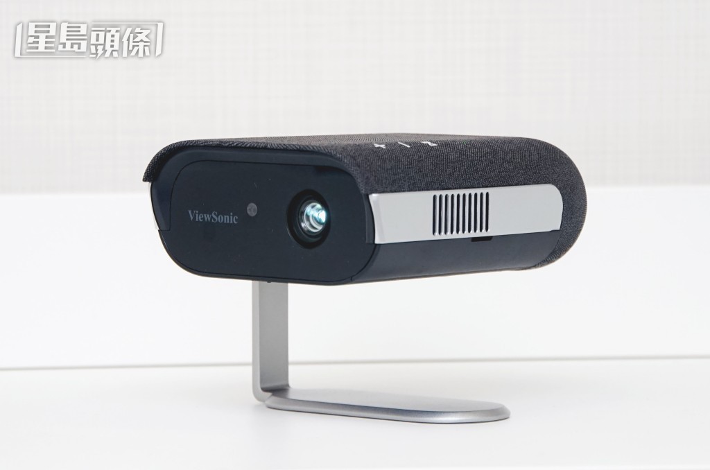外形跟M1 Pro如出一轍的M1 Max,機身用上織布物料包裹,重量不到1kg只有960g,放入背囊隨身攜帶絕不成問題。 新作當然保留著獨特的3合1金屬支架設計,不使用時是一個鏡頭保護蓋,推出來則變成可穩(wěn)固支撐著投影機的支架,并自動開啟電源,多得其360度旋轉設計,可以輕松調校不同的投影角度。