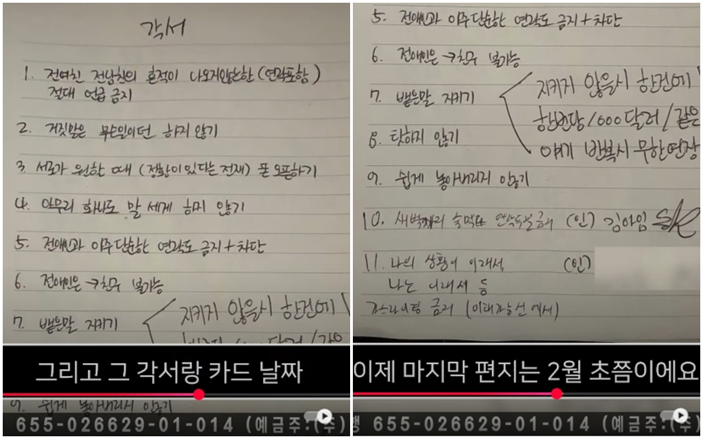 YouTube節(jié)目《橫豎研究所》26日晚間曝光金賽綸老公和摯友的受訪錄音檔,藉此證實金秀賢昔日曾和未成年的金賽倫交往過。但金賽綸和老公的相處切結書(保證書、承諾書)、分手信件,也意外成為另一個焦點。金賽綸夫妻共約定11點事項,其中強調不能和前任聯(lián)系、也不能情緒勒索對方。至于2人分開后,金賽綸寫給老公的手寫信也被公開,她坦言“每天都無比漫長,充滿不安”,還不對自責道歉,讓不少網(wǎng)友看了覺得心疼,忍不住直說“太苦命了”。