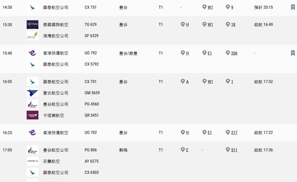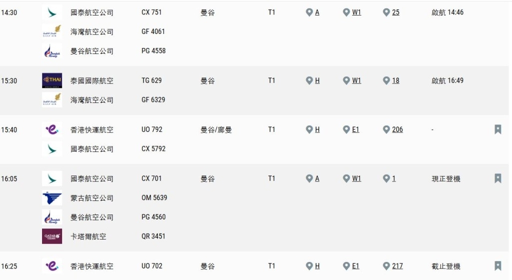 香港往泰國曼谷航班受影響