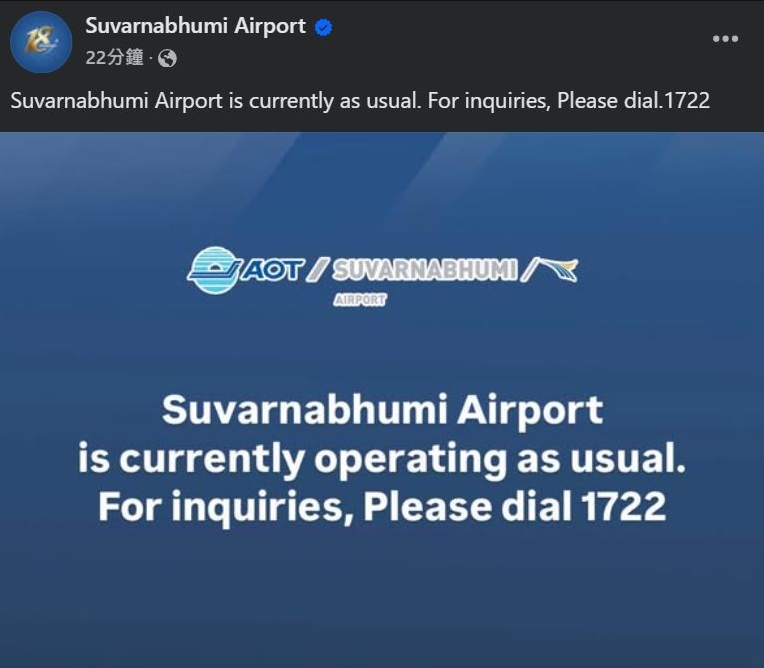曼谷蘇萬那普機場表示運作如常。