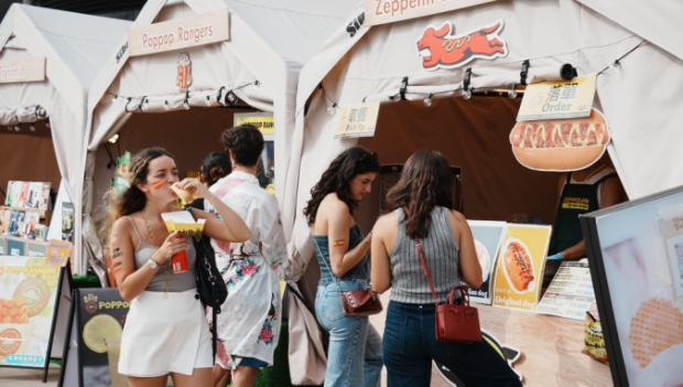 記者下午約3點(diǎn)到啟德主場館旁海濱位置的“啟德美食海灣嘉年華”,現(xiàn)場有超過28個美食攤位,售賣各種小食,包括35元一份雞蛋仔、30元一份6粒餃子、30元一份10粒炸燒賣、29元一份“混醬熱狗”、40元一份德國酸菜熱狗、68元一份明太子蟹肉玉子燒。