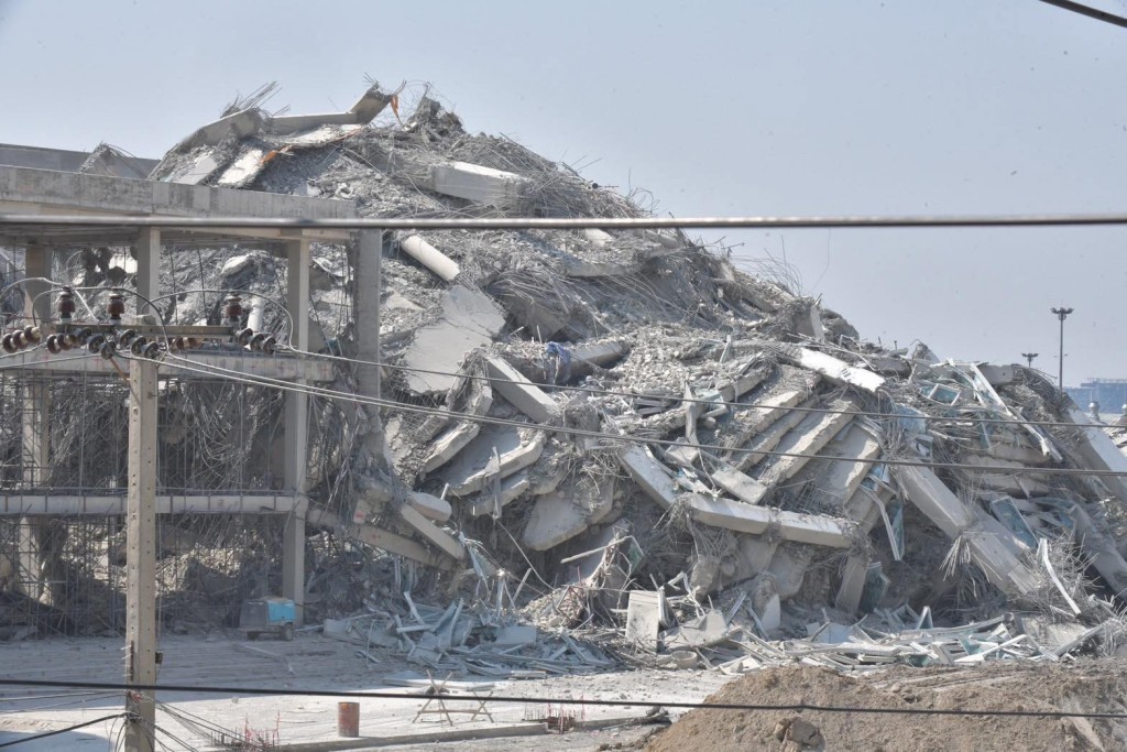 ▲建筑中的大樓倒塌。