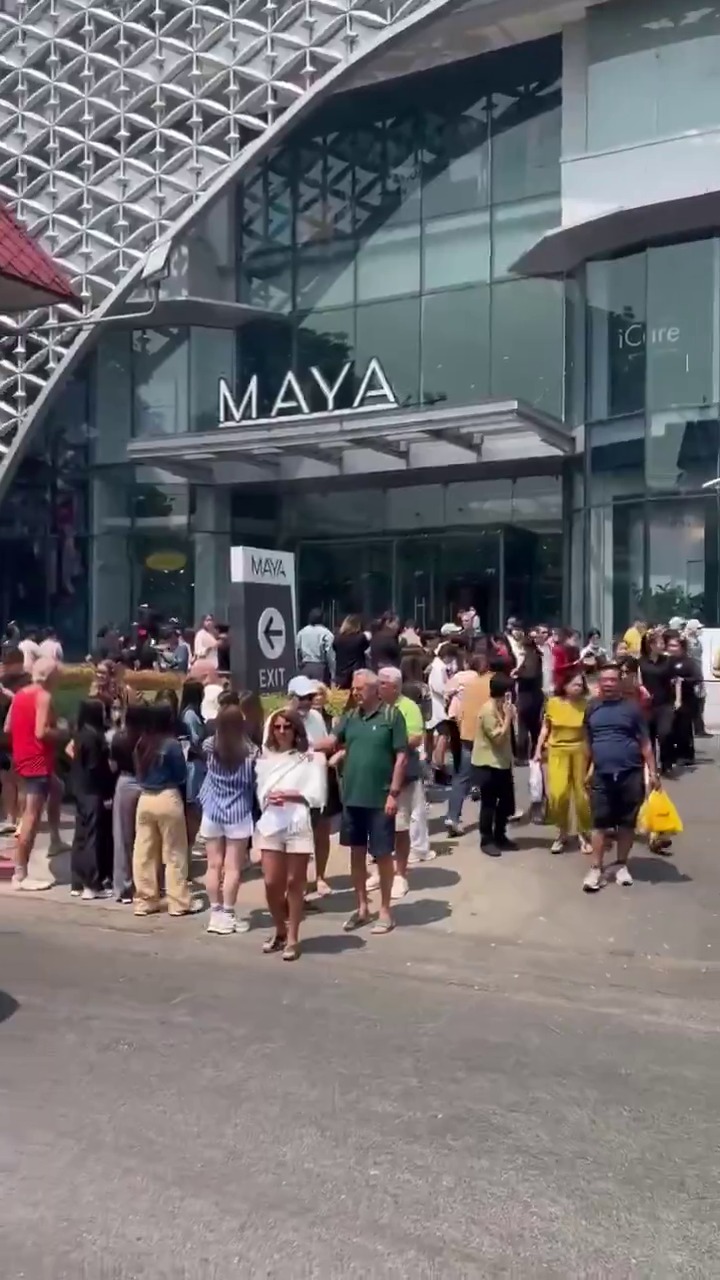 地震后,有泰國游客從商場(chǎng)走到戶外避難。 平臺(tái)X