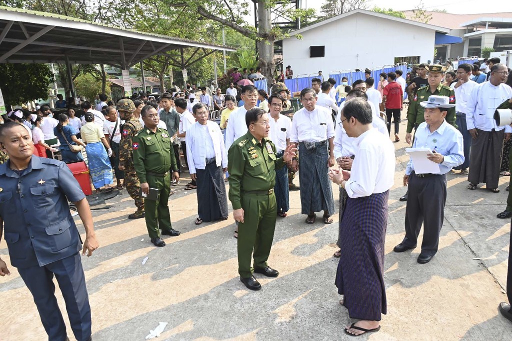 ▲緬甸軍政府領袖敏昂萊視察災情。美聯(lián)社