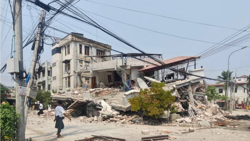 ▲3月28日在緬甸曼德勒省拍攝的地震后受損的建筑。 新華社