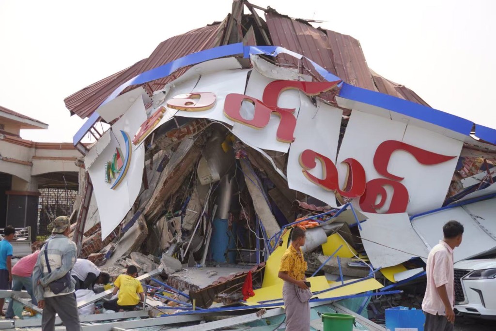▲緬甸內(nèi)比都拍攝的地震后受損的建筑。 新華社