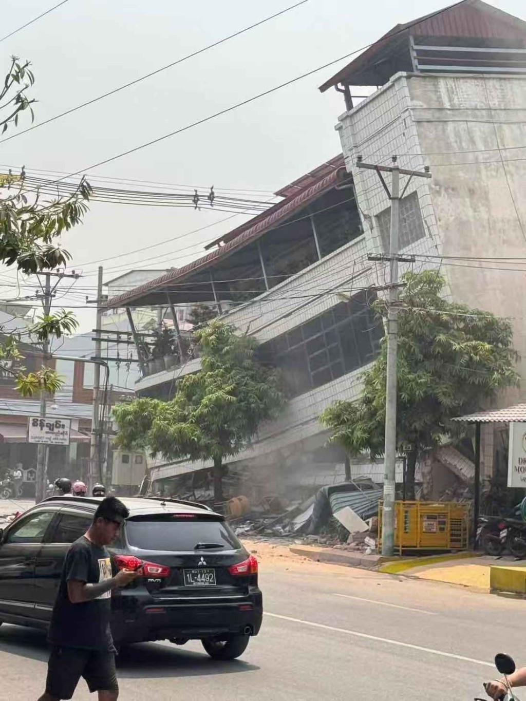 在緬甸曼德勒省拍攝的地震后受損的建筑。