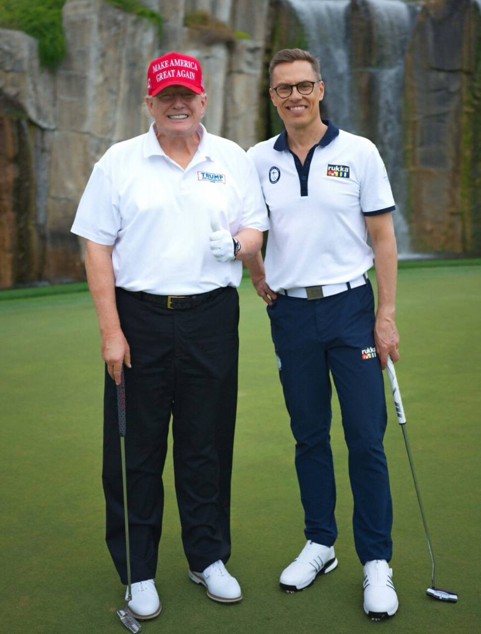“斯圖布總統(tǒng)和我期待加強(qiáng)美國(guó)與芬蘭間的伙伴關(guān)系,這包括為美國(guó)購(gòu)買和開(kāi)發(fā)大量急需的破冰船,為我們國(guó)家和世界帶來(lái)和平與國(guó)際安全?!碧乩势赵谔闹姓f(shuō),同時(shí)稱贊斯圖布為“非常好的高爾夫球手”。