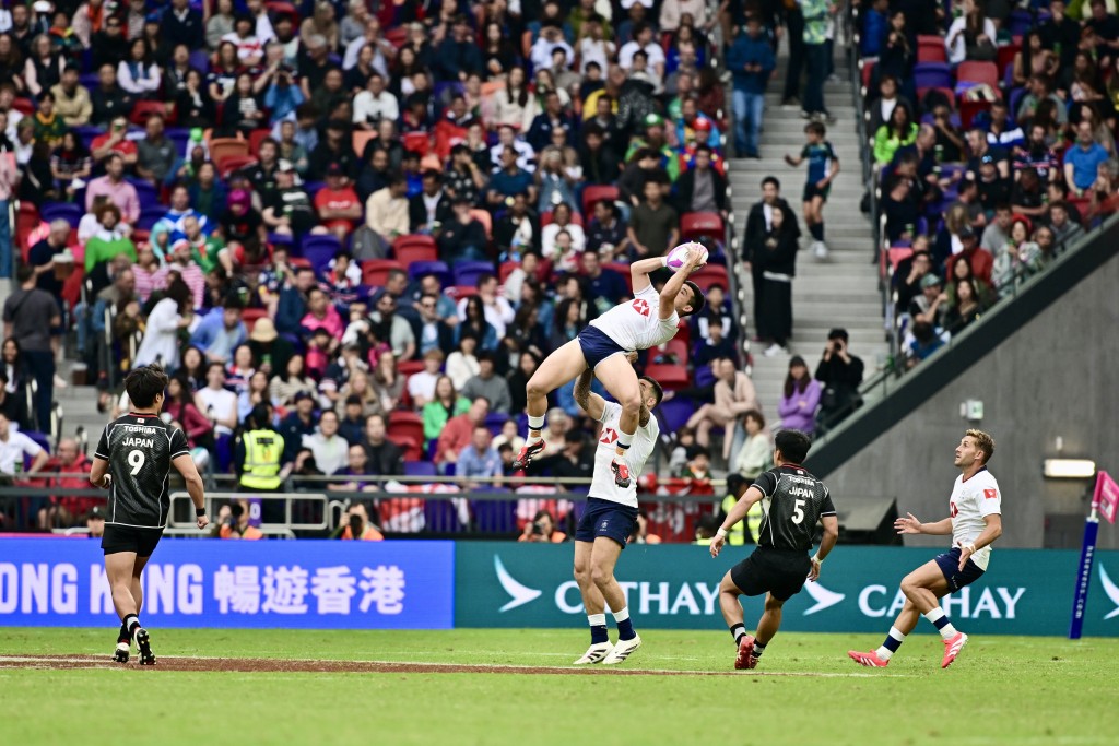 ▲七人欖球賽第二日比賽,男子隊(duì)賽事由香港對(duì)日本。