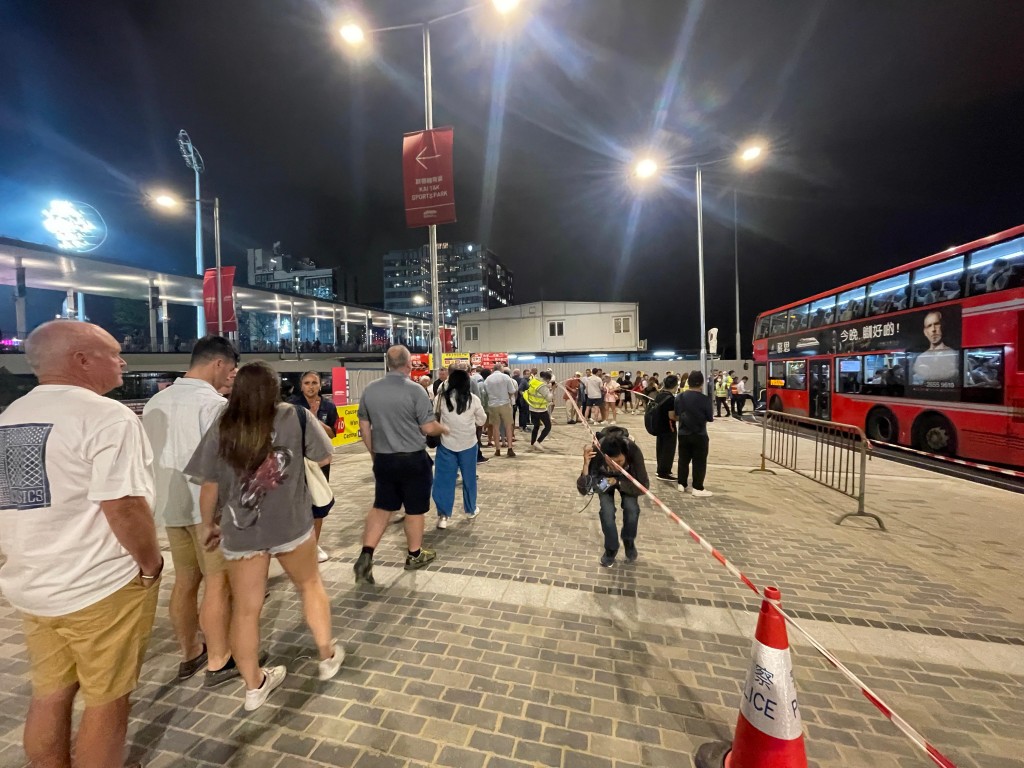 【20:39】最后一場賽事上演,澳洲26:7大勝南非,為七欖首日畫下圓滿句號(hào)。觀眾陸續(xù)在工作人員指示下,有序往啟德及宋皇臺(tái)站乘搭港鐵離開;亦有觀眾選擇到宋皇臺(tái)道上落客區(qū)乘搭巴士或的士離場,部分巴士路線出現(xiàn)人龍。