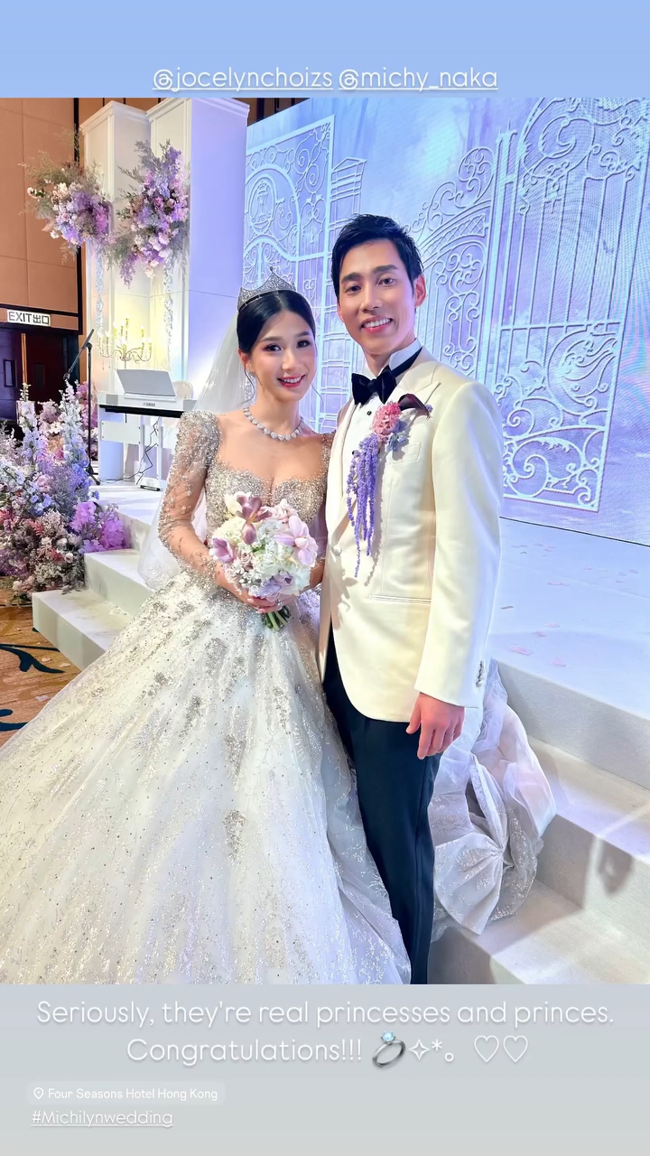 蔡頌思與日籍金融才俊老公的婚禮原來在前日(29日)舉行,上午先進(jìn)行接新娘及注冊儀式,晚上在五星級酒店筳開廿多圍。獲邀出席的汪明荃在IG貼上多張相并說:“參加蔡冠琛先生太太嫁女婚宴,一對新人Jocelyn/Mikie,郎才女貌非常登對。恭祝一對新人甜蜜幸福,開開心心。恭喜蔡先生及太太新任外父外母。恭喜恭喜!”蔡頌思身上金器相當(dāng)夸張,龍鳳鐲掛滿身,頭上又戴有金鳳冠,頸上的金鏈比PIZZA還要大,果然富貴逼人。